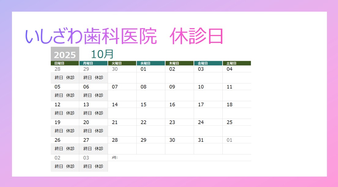 10月は日曜日・月曜日を終日休診とさせていただきます。